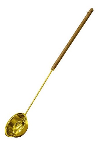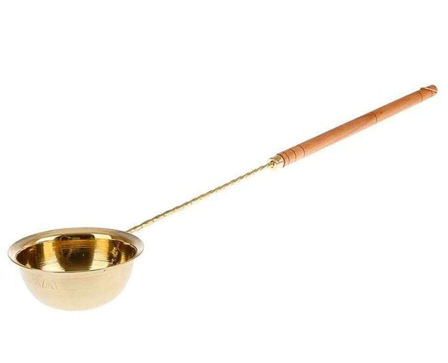 Черпак для бани с длинной ручкой используется для подачи воды на камни.