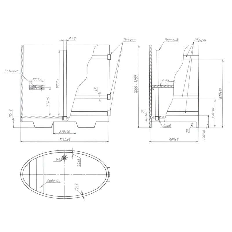 Купель овальная из лиственницы 0,59х1,06