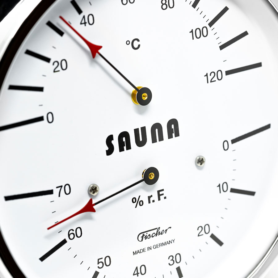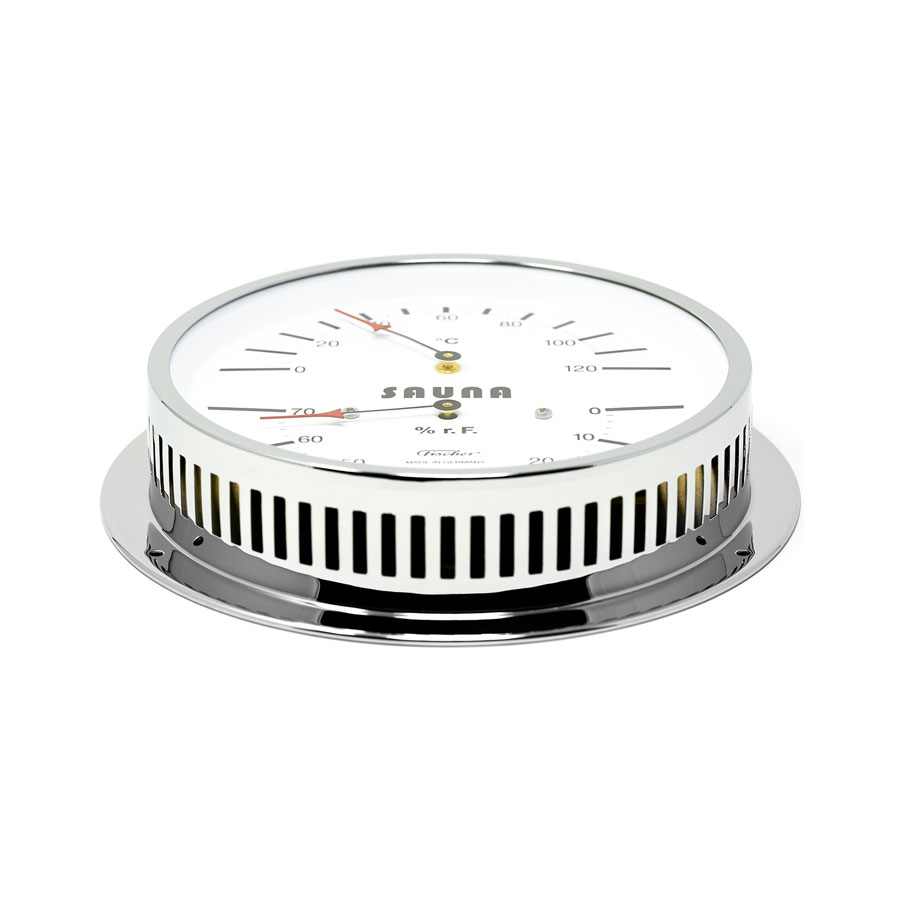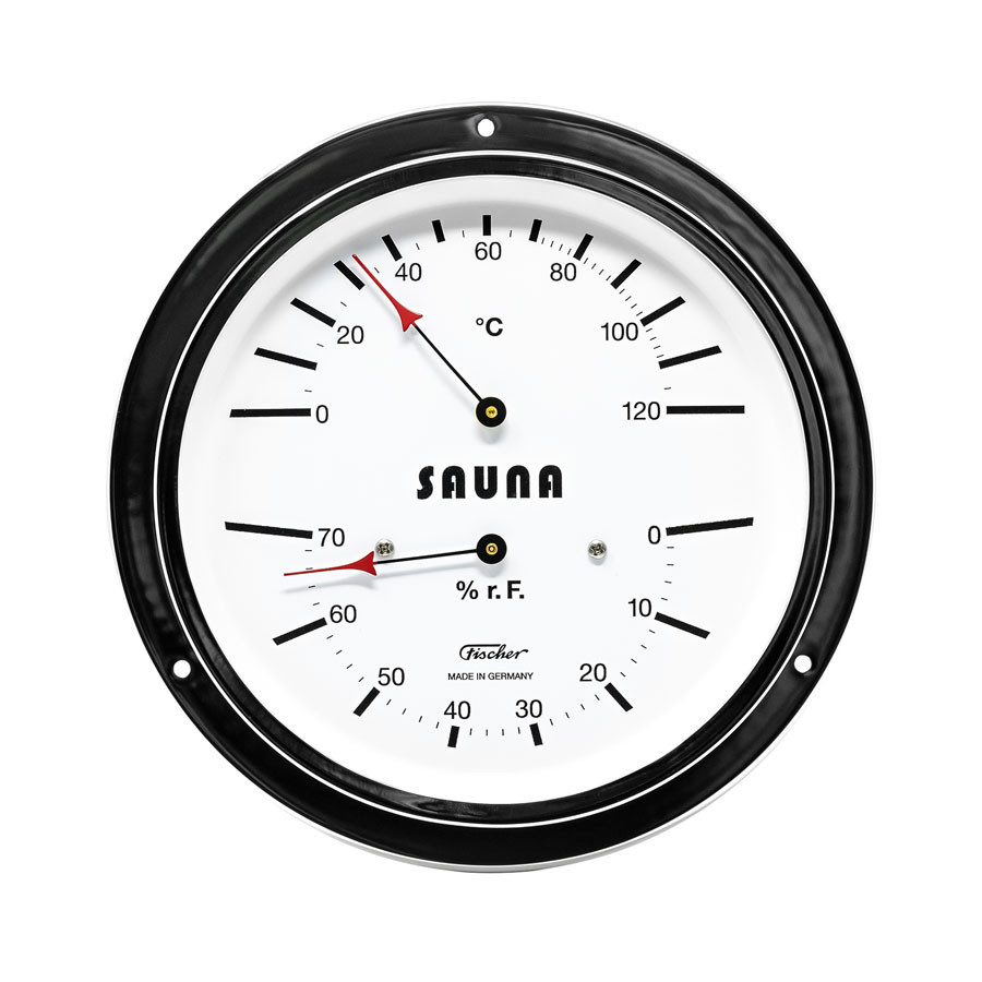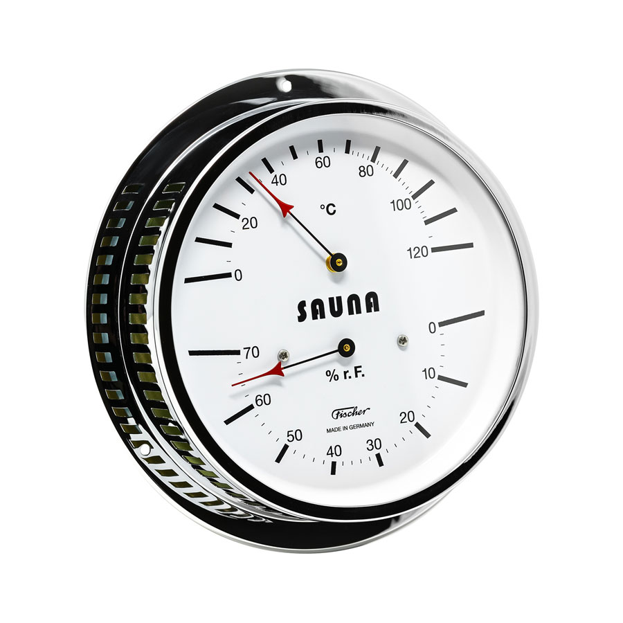 Прибор предназначен для измерения температуры и влажности в сауне. Включает биметаллический термометр и гигрометр с синтетическим волосом. Корпус изготовлен из хромированной латуни. Точность измерения влажности ± 3% относительной влажности. Точность измерения температуры ± 1 °С.