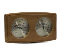 Термогигрометр 271-THBD от компании Sawo имеет классическую прямоугольную форму со скруглёнными углами. В широкой рамке из древесины кедра находится два круглых окошка. Под стеклом каждого окошка расположен графичный циферблат.Один из них - это гигрометр, который с точностью измерит уровень влажности в парной, другой - термометр, который сообщит о температуре воздуха. Данный прибор прекрасно подойдёт для использования в любом парильном помещении.