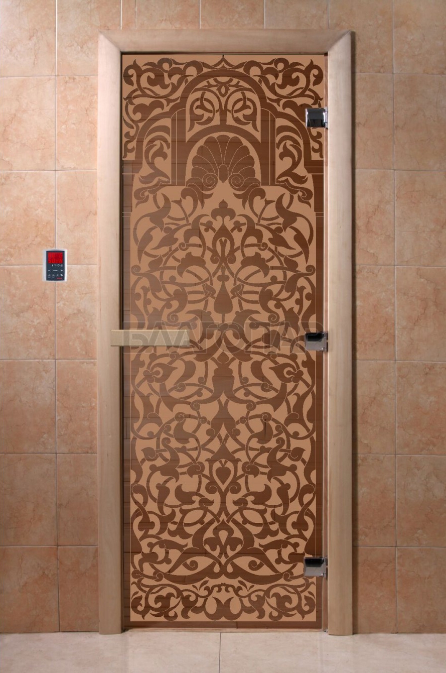 Дверь с рисунком "Флоренция" каленое матовое стекло Бронза, 8мм, 1900х700 мм