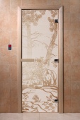 Дверь с рисунком Мишки каленое матовое стекло Сатин, 8мм, 1900х700 мм