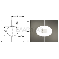 Декоративная металлическая пластина 35°- 45° состоит из двух частей, что облегчает монтаж и обеспечивает установку после монтажа дымохода Перметр.