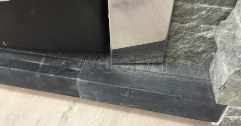 Уголок полированный из талькохлорита представляет собой декоративный элемент, предназначенный для облицовки печей, каминов и стен. С его помощью намного проще укладывать плитку и декорировать ее стыки. Поверхность уголка может быть полированной или матовой, а края могут быть с фасками или без них. Уголок подбирают в соответствии с облицовочной плиткой и ее рисунком.Как правило, уголок из талькохлорита делают из цельных кусков камня, распиливая их ручным способом. При их изготовлении не используют клеящих составов и других химических веществ. Это значит, что уголки, так же как и сам камень, обладают всеми уникальными свойствами природных камней и положительно влияют на здоровье.