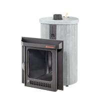 Дровяная печь «Ферингер Малютка ПФ» в облицовке из натурального камня «серый велюр» имеет оптимальный размер и мощность для семейных бань, а главное — создает идеальные условия для парения в режиме русской бани. Данная модель предназначена для парных объемом до 18 м3. Топка печи выполнена из жаростойкой нержавеющей стали AISI439, толщина топки 3-4 мм.