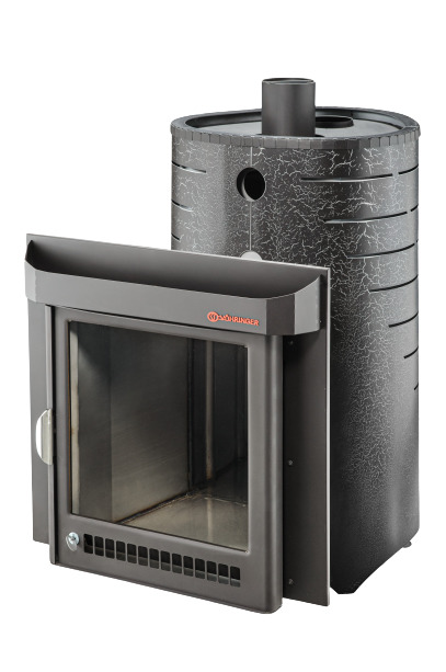 Закладка дров производится из смежного помещения. Дверца снабжена большим стеклом, что создает эффект камина. В банной печи Vöhringer «Макси ПФ» можно установить пароиспаритель Ферингера (ПИФ) и 3 парогенерирующие кассеты.