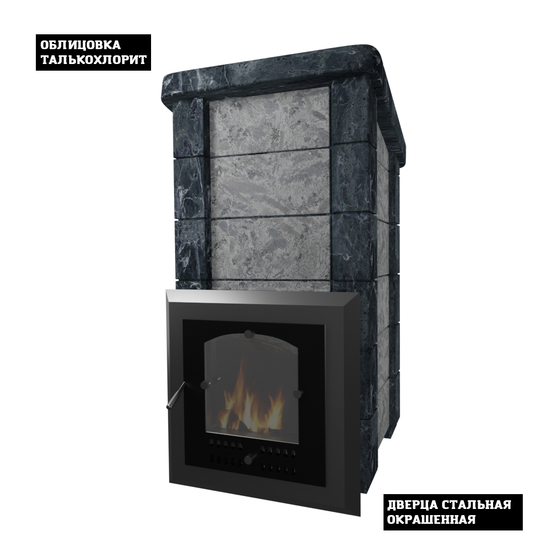 Топочный агрегат из чугуна, увеличенная емкость для камней с вертикальной загрузкой (конструкция каменки такова, что за счет 100%-го охвата пламенем ее поверхности, прогрев камней осуществляется до высоких температур), механизм регулировки конвекции, возможность использования парового инжектора для получения пара исключительных кондиций, массивная красивая облицовка из природного камня - все это новая «Сударушка С» (Семейная).