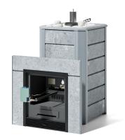 Ялта 15 в камне - печь для русской бани и сауны, сочетающая в себе закрытую каменку, встроенный парогенератор, комбинированный кожух из природного камня и нержавеющей стали подарит атмосферу тепла и уюта в парной, украшая собой банный комплекс. На печах данной серии есть возможность установки три вида системы получения горячей воды: с натрубным теплообменником, натрубным баком и с навесным теплообменником.