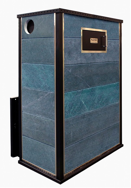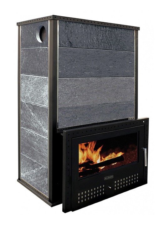 Дровяная печь для русской бани KLOVER RT 100-RV, производство Италия. Топка печи выполнена из жаропрочной котловой окалиностойкой стали марки 13CrMo4-5 толщиной 5 мм. Покрытие печи из натурального камня трансформирует излучение от горячей стали, постепенно отдает тепло, не пересушивая воздух в парной.