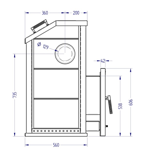 - Ручка из нерж.стали, ящик для золы, керамическое стекло.