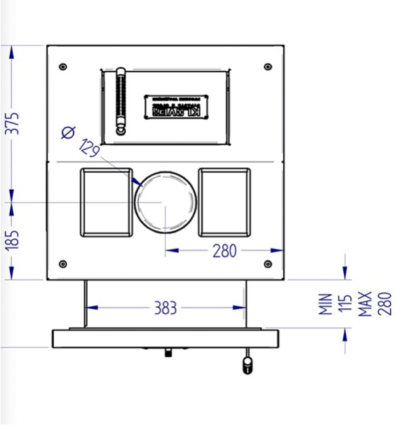 Печь снабжена раздвижным тоннелем для установки в простенок с разной толщиной стен. Подключение к дымоходу может быть осуществлено с трех сторон: слева, справа, сверху.
