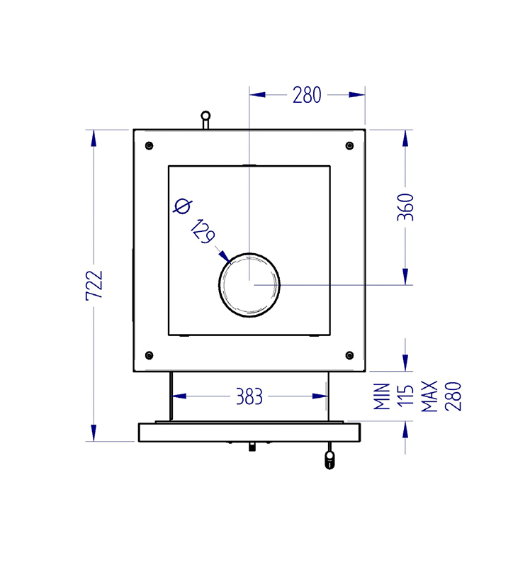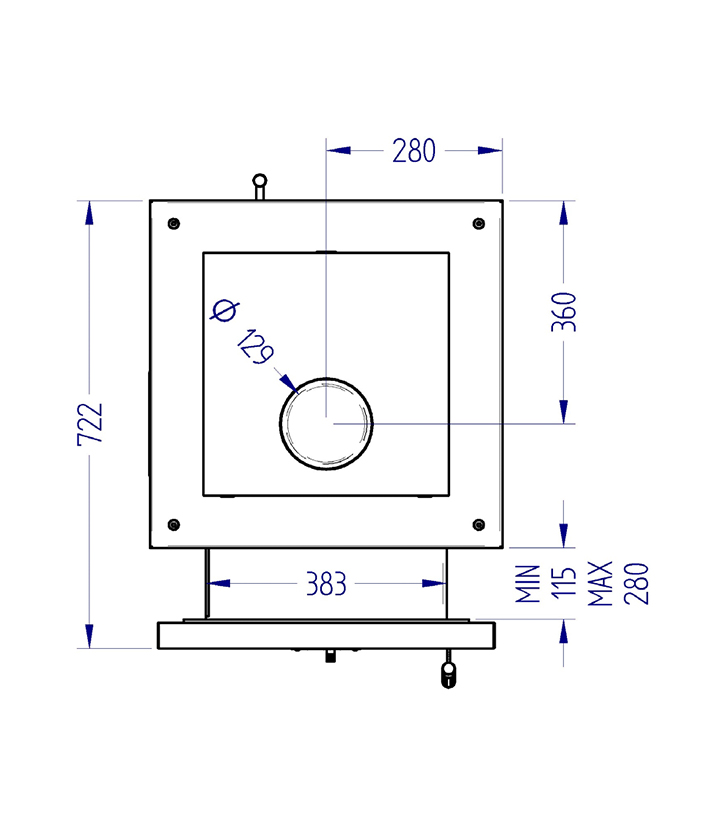 Печь снабжена раздвижным тоннелем для установки в простенок с разной толщиной стен. Подключение к дымоходу может быть осуществлено с трех сторон: слева, справа, сверху. Дверца с большим смотровым стеклом позволяет любоваться огнем как у полноценного камина.