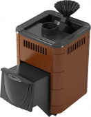 Печь для бани ТМФ Гейзер Микра оснащается каменкой закрытого типа. Дверь здесь оформлена в цвете антрацит, а конвектор в стиле терракота. Преимуществом металла печи являются жаростойкость и высокая легированность. К тому же, здесь имеется хром, делающий сталь более упругой и твёрдой. В изделии отсутствуют те полости, которые более всего подвергаются загрязнению сажей. Это делает существенно более простым обслуживание печи. Удобство в монтаже обеспечено централизованным расположением дымохода.