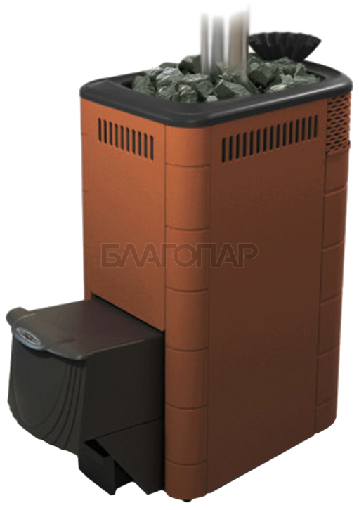 Модификация печи «Гейзер XXL 2017», отличающаяся от базовой версии наличием конвектора цвета «терракота» и дверцей из жаростойкой стали.