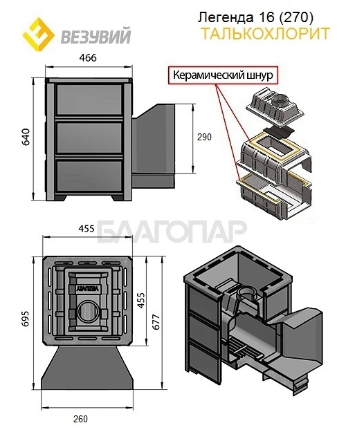 Преимущество печи в том, что топка печи состоит из 3-х ЧУГУННЫХ элементов. На стыке между ними используется керамический шнур с рабочей температурой 1200 градусов. То есть топка печи абсолютно герметична! Для фиксации деталей между собой применяется болтовое соединение, что даёт 100% гарантию безопасности при эксплуатации.