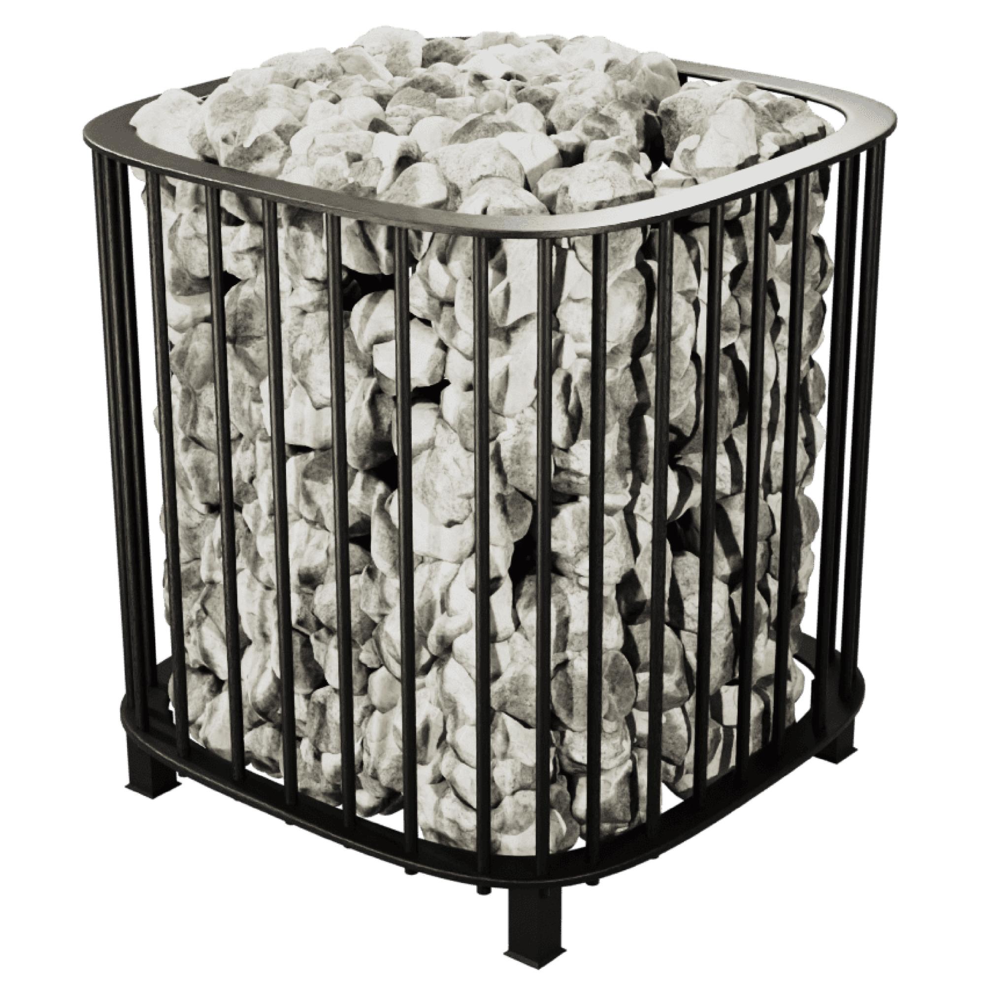 Секрет приятного мягкого пара этой модели в длинных ТЭНах, которые эффективно прогревают камни по всей высоте. Поэтому тепло излучается равномерно и быстро во все стороны. Вода, подброшенная на камни, превращается в мягкий, релаксирующий пар. Нагретые до высокой температуры ТЭНы защищены слоем камня, что устраняет жесткое тепловое излучение.