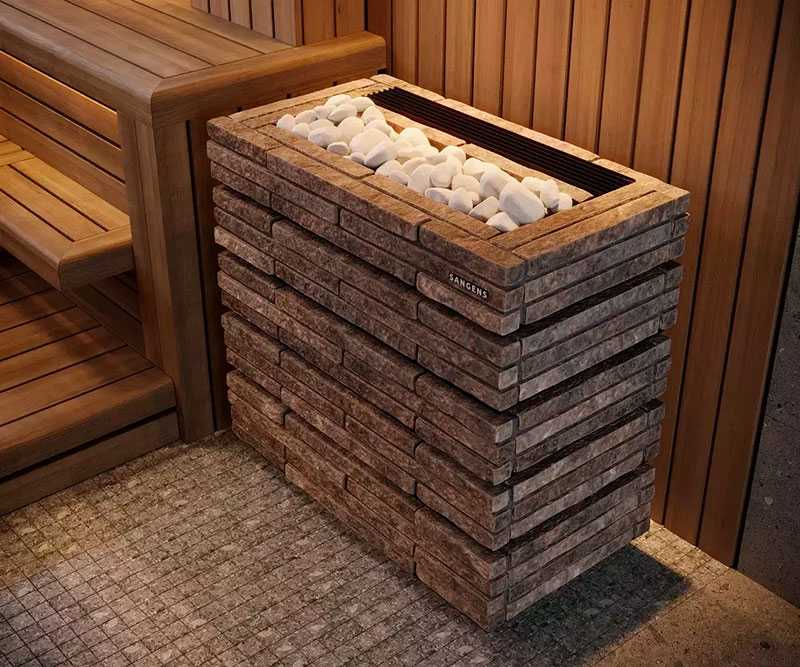 В печи 2 источника тепла: конвектор для нагрева воздуха и закрытая каменка с камнями для получения пара.