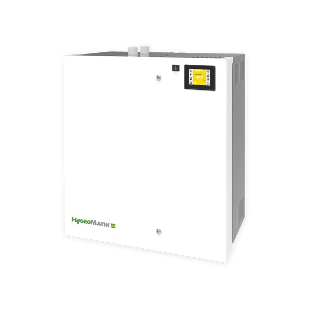 Электродный тип нагрева. Благодаря готовой конфигурации, парогенератор просто установить. Возможная мощность от 3 до 130 кг пара в час и это не предел. Несколько устройств возможно соединить вместе для синхронной работы. Возможность установки до 4 сценариев работы освещения Быстрое переключение между 4 ароматами без необходимости замены контейнеров. Непрерывное производство пара. Управляющие и сигнальные функции можно назначить на контрольные реле. До 11 реле, в зависимости от модели. Набор опций всегда можно обновить. Активное энергосбережение с помощью функции ECO. Изготовлены из стойкой к коррозии нержавеющей стали. Система аварийного отключения обеспечивает безопасность. Полностью изготовлен в Германии. Встроенная сенсорная панель управления. Простая и быстрая навигация. Точная координация работы между парогенератором и вентиляцией. Планирование периодов работы с помощью удобного таймера. Выгрузка системных сообщений с указанием даты и времени. Своевременные сообщения о состоянии парогенератора помогут избежать ущерба и дорогих сервисных операций. 100% чистый пар Большинство парогенераторов на рынке используют для очистки заливание химических веществ в бак парогенератора. Остатки веществ могут попасть в легкие посетителей. Парогенераторы HygroMatik используют метод простой механической очистки. Это гарантирует отсутствие в баке парогенератора посторонних веществ и максимально чистый пар.