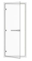 Дверь отличается изысканным дизайном благодаря гармоничному сочетанию алюминия и закалённого стекла. Алюминиевый каркас сохраняет свои первоначальные свойства и внешний вид на протяжении всего срока службы. Стекло подвергается специальной обработке, которая значительно повышает его устойчивость к температурным колебаниям и механическим воздействиям. Эта модель станет отличным выбором для хамама, так как не подвержена влиянию агрессивной влажной среды, характерной для турецкой бани.