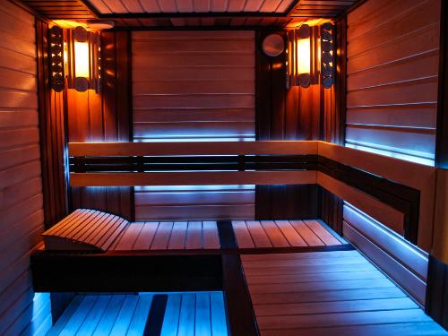 Стильная сауна с разноцветной подсветкой (КП Карловы Вары)